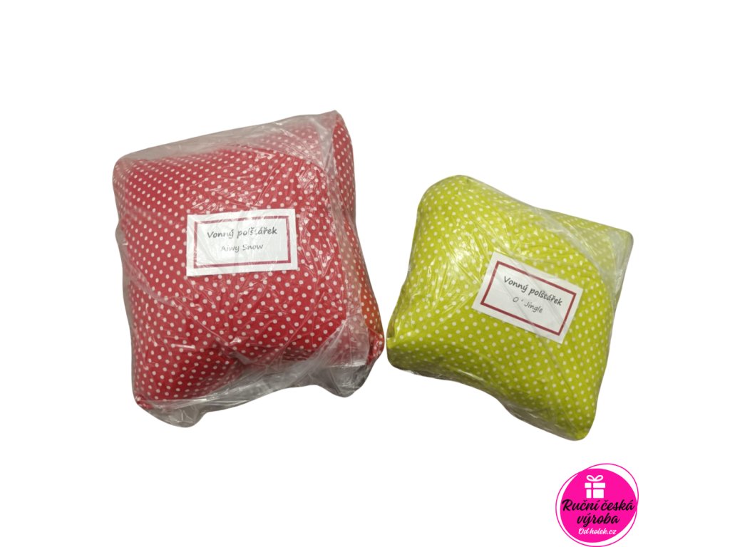Červený polštářek - vůně Aiwy Snow a žlutý polštářek - vůně O´Jingle.