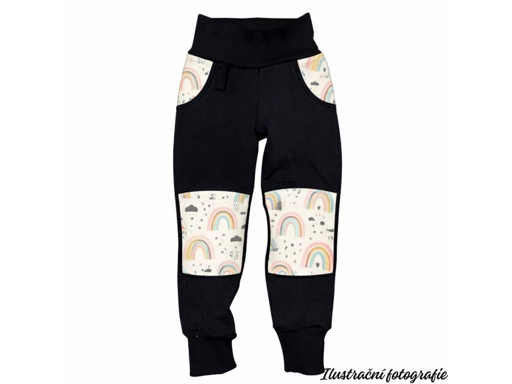 Barevná kolena jarní softshellové kalhoty - DUHY
