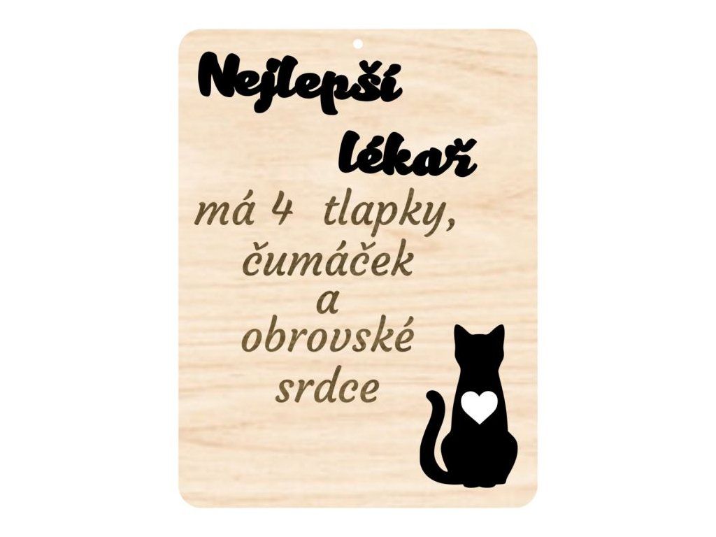 Text je doplněn o nabarvenou siluetu kočky, která dodává cedulce jedinečný 3D efekt.