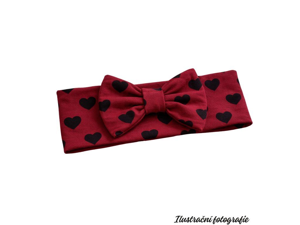 Čelenka s mašlí - ČERNÁ SRDCE NA BORDÓ