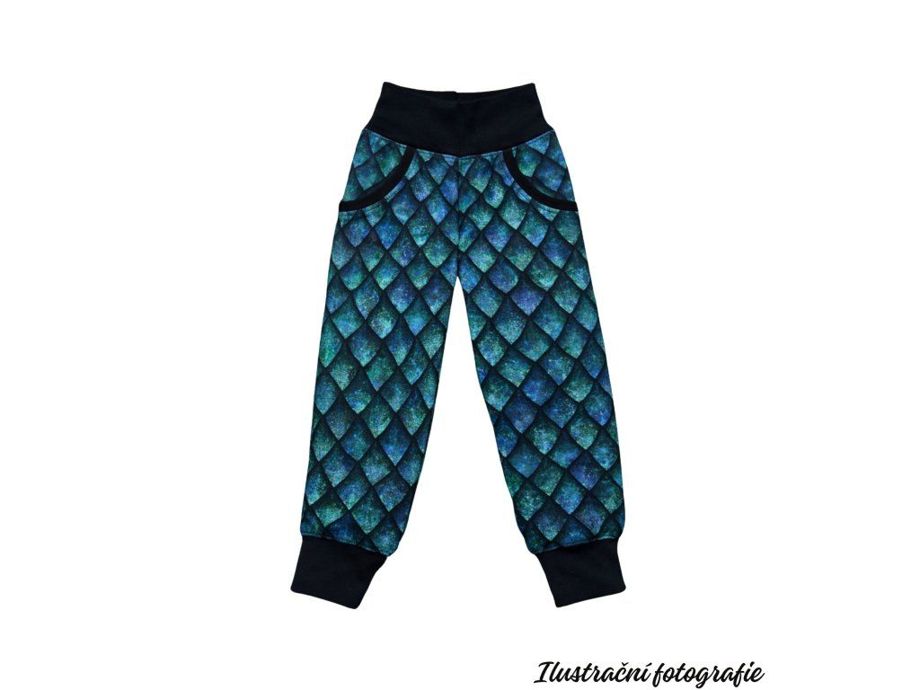 Nohavice u dětských velikostí (68 - 152) zakončené nápletem.