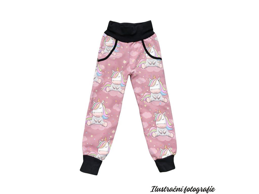 Celobarevné jarní softshellové kalhoty - JEDNOROŽCI OBLOHA