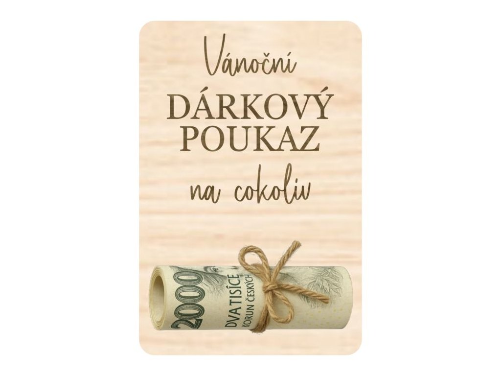 🎁 Destička na peníze – Dárkový poukaz je originální dřevěná destička, která slouží jako stylový držák pro peníze nebo poukaz.