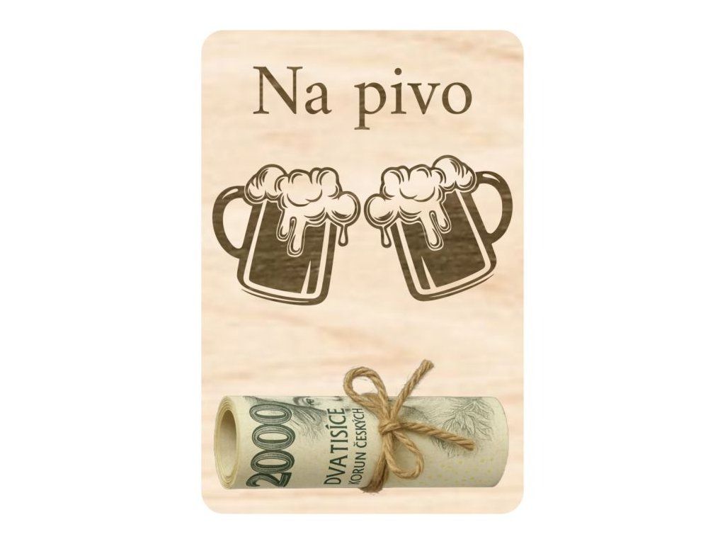 Vtipná dřevěná destička na peníze s motivem „Na pivo“ potěší každého milovníka tohoto oblíbeného nápoje. Destička má dvě vyřezané dírky pro provlečení provázkem nebo mašlí k uchycení bankovky. Skvělý nápad na dárek k narozeninám, svátku nebo jen tak pro radost. Originální způsob, jak darovat příspěvek na pořádnou pivní zábavu! 🍻