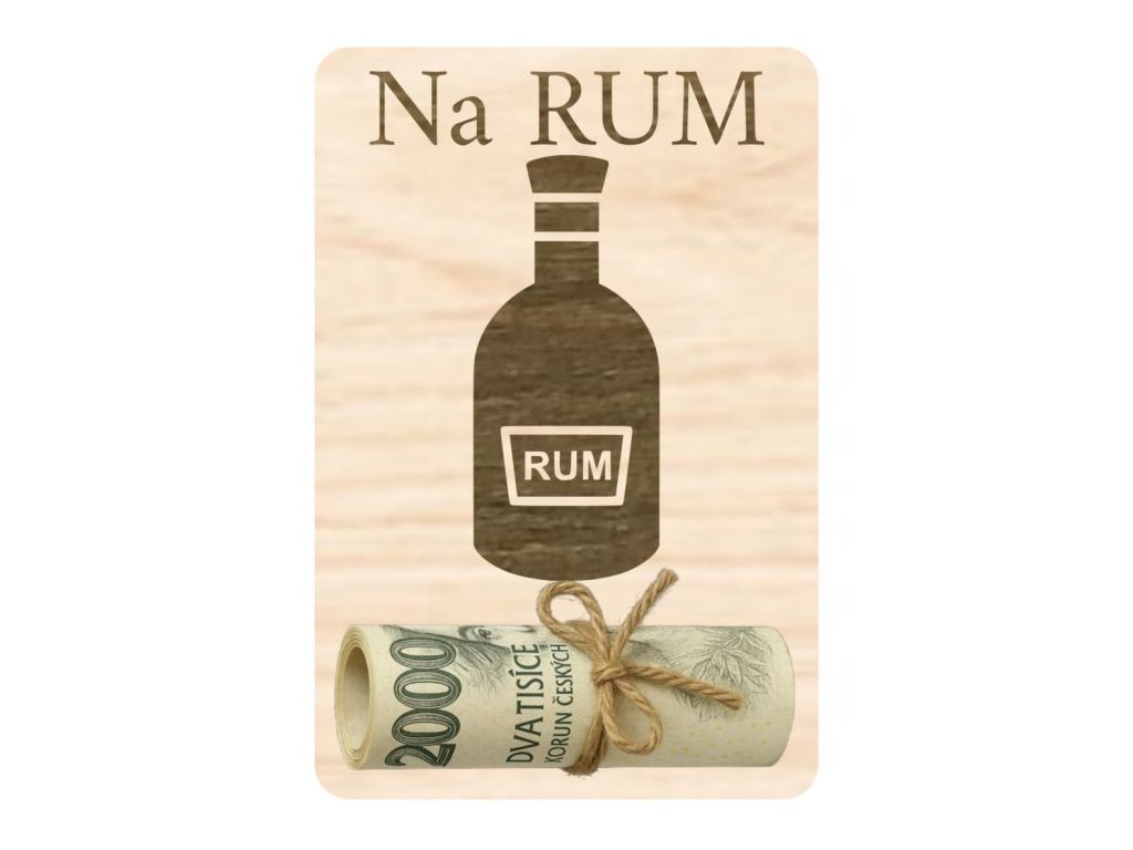 Vtipná dřevěná destička s nápisem „Na RUM“ je ideální způsob, jak darovat peníze milovníkům tohoto oblíbeného nápoje. Destička má dvě vyřezané dírky pro provlečení například provázkem nebo mašlí k uchycení bankovky. Perfektní dárek na oslavy, narozeniny či jen tak pro radost! 🎉
