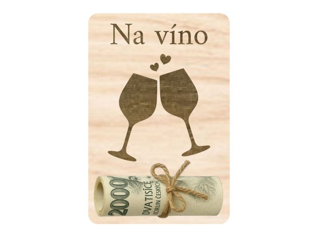 Originální dřevěná destička s nápisem „Na víno“ je skvělým způsobem, jak darovat peníze milovníkům vína. Destička má dvě vyřezané dírky pro provlečení například provázkem nebo mašlí k uchycení bankovky. Vtipný a praktický dárek na oslavy, narozeniny i jiné příležitosti! 🎁