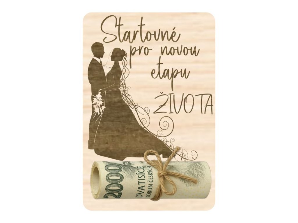 Originální dřevěná destička na peníze s motivem „Nová etapa života“ je krásným a vtipným způsobem, jak darovat peníze například k svatbě, promocím nebo jiné velké životní změně.