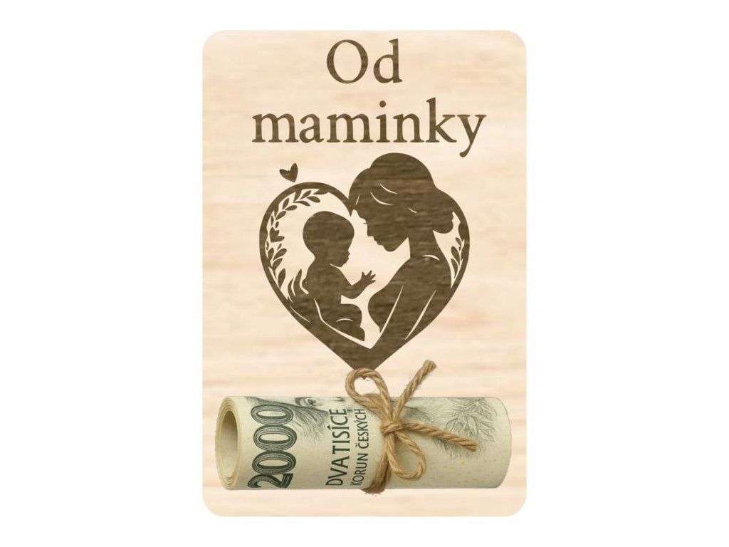 Tato dřevěná destička na peníze je skvělým způsobem, jak darovat peníze s osobním dotekem. Na destičce je text "Od maminky" a dvě vyřezané dírky pro provlečení provázkem nebo mašlí k uchycení bankovky. Ideální pro všechny, kteří chtějí darovat peníze s láskou a vtipem. Perfektní pro různé příležitosti, kdy chcete obdarovanému nabídnout něco osobního.