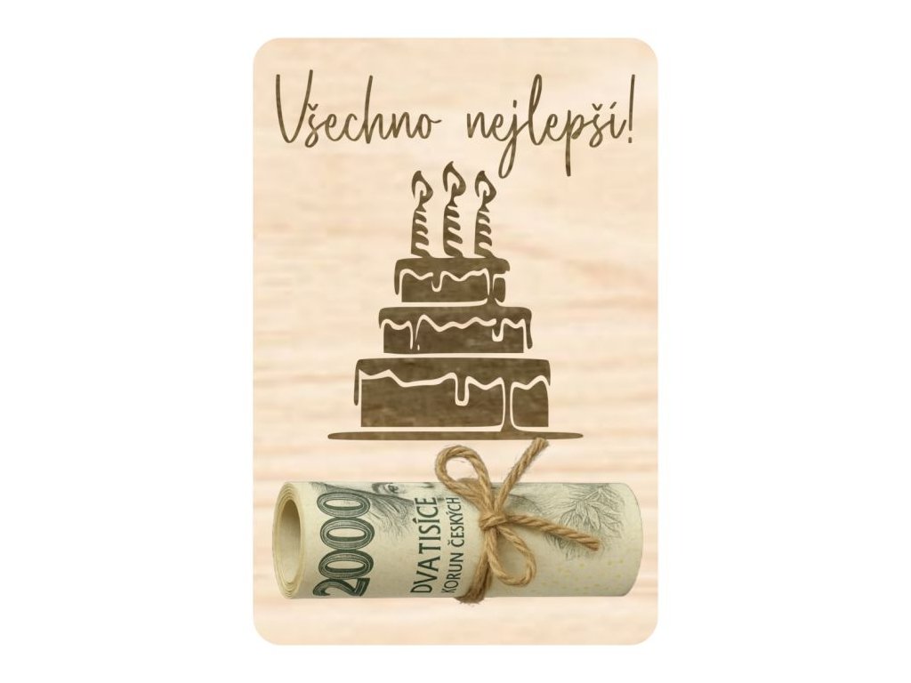 🎁 Destička na peníze – Všechno nejlepší je krásná dřevěná destička, ideální pro narozeniny nebo jinou oslavu.