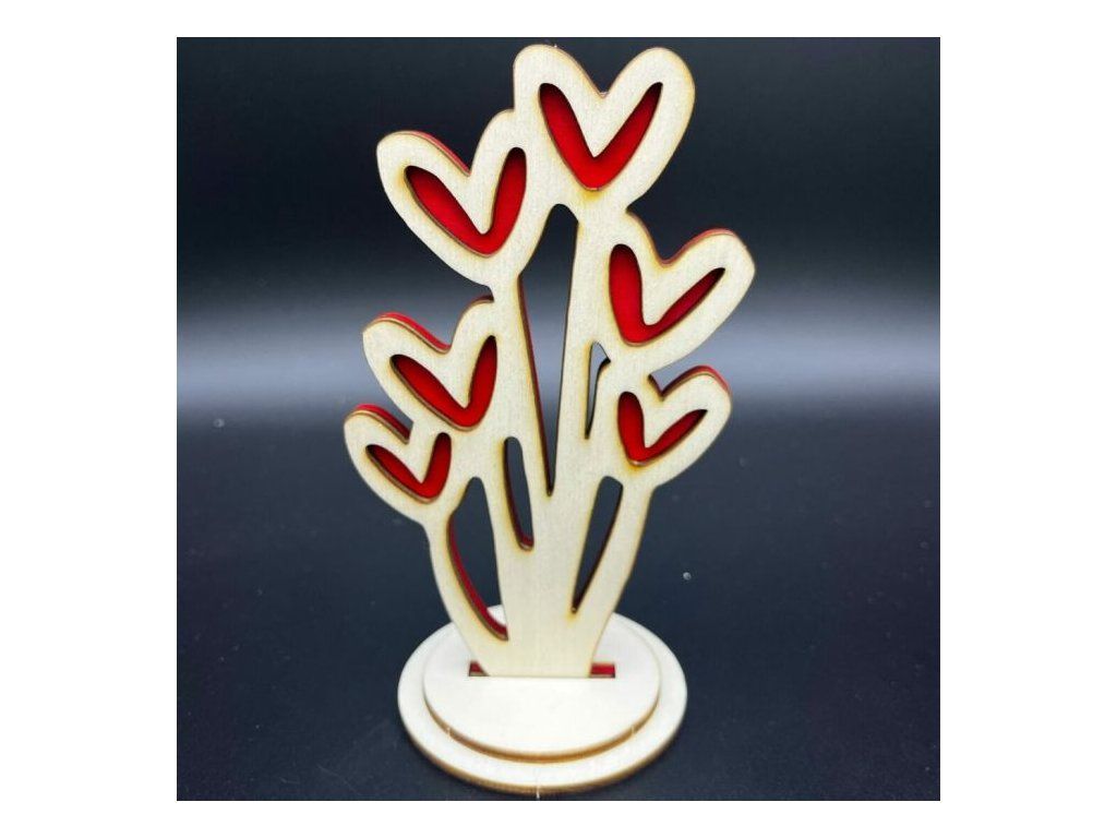 Tato nádherná dvouvrstvá dřevěná rostlina s kvetoucími srdíčky je ideálním dárkem pro vaši milovanou osobu. Srdíčka místo květů a červený podklad vytvářejí fascinující 3D efekt, který oživí jakýkoli interiér. Ukažte svou lásku originálním způsobem!