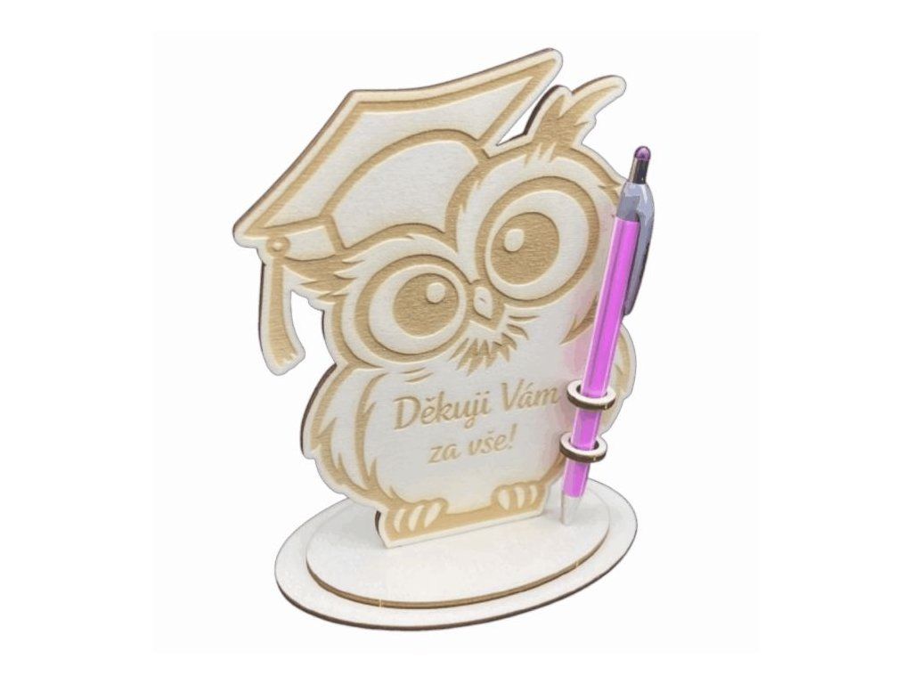 Dřevěná sova pro paní učitelku – Děkuji Vám za vše