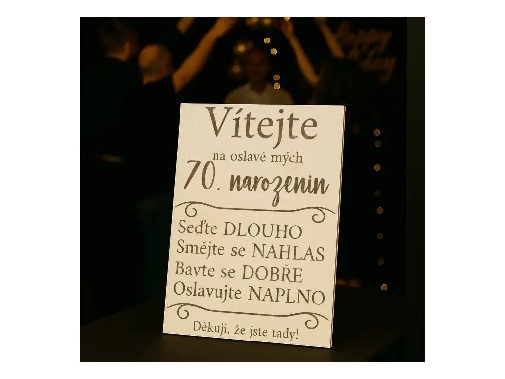 🥳 Dřevěná uvítací cedule na narozeniny – 70