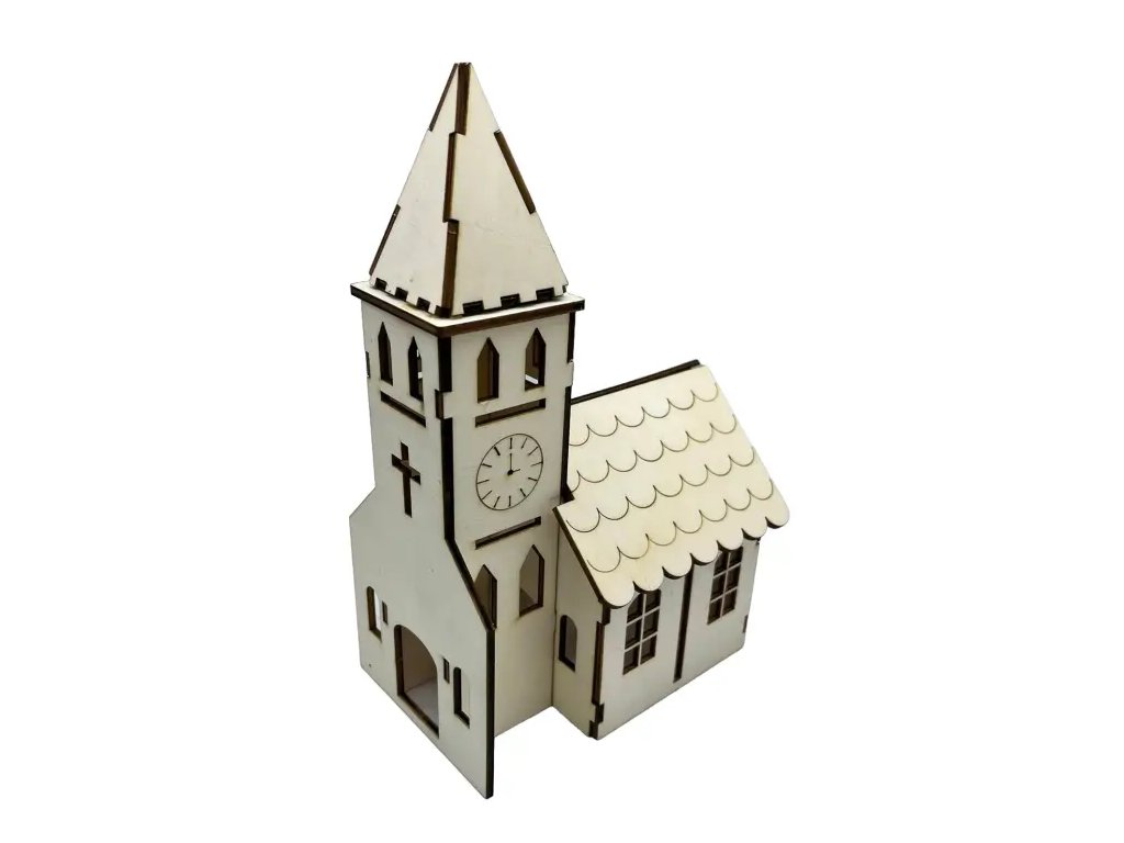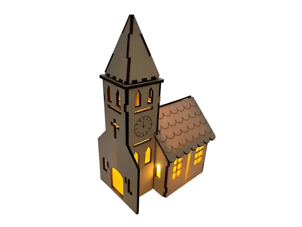 ⛪ Dřevěný kostel – vánoční dekorace