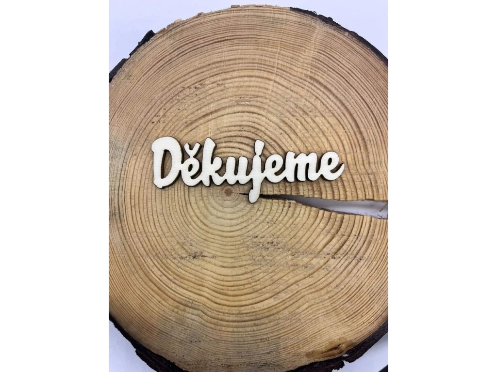 Tento milý dřevěný nápis se hodí jako poděkování pro hosty u svatebních darů, jako součást dárkového balení pro učitele nebo jako dekorační prvek do věnce.
