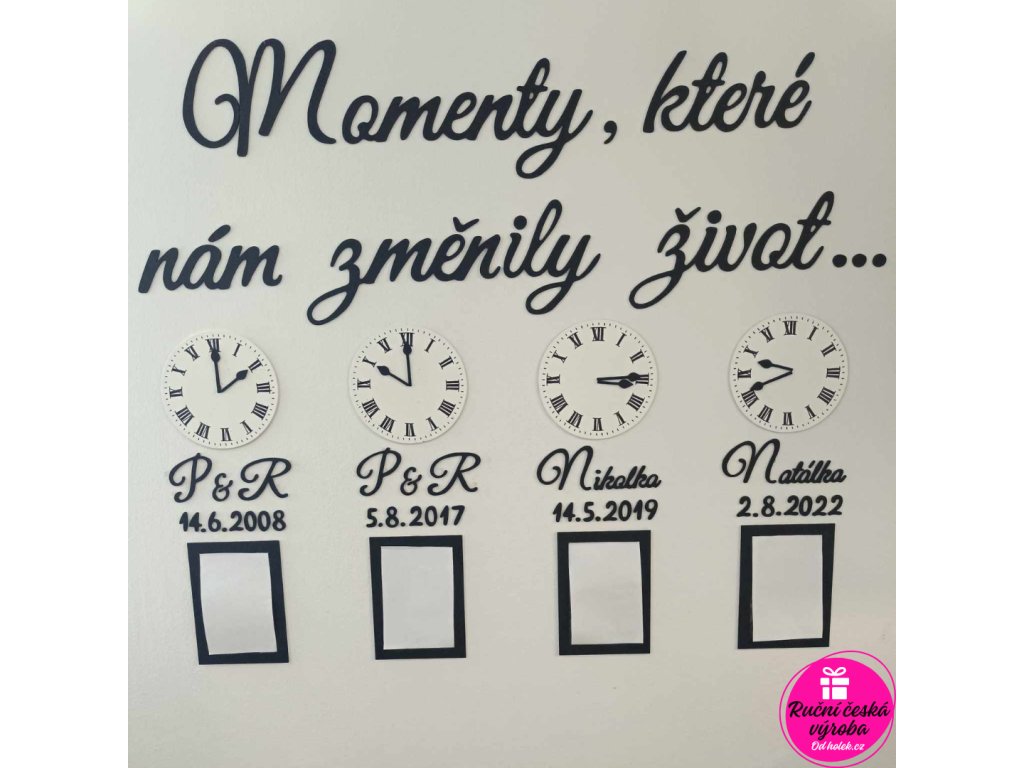 Ručně vyráběný, dřevěný text se čtyřmi rámečky na vaši zeď. Na objednání, do 14 dnů.