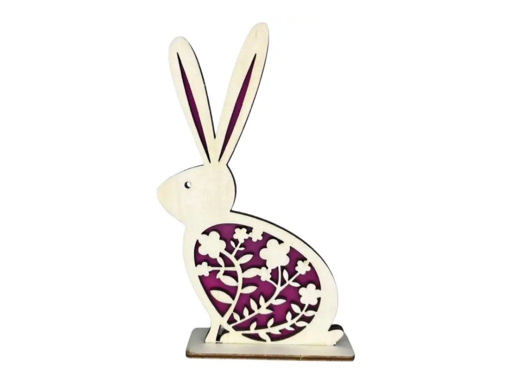 - Designový prvek: Moderní silueta zajíčka s jemným květinovým prořezem, podloženým výraznou barvou pro jedinečný efekt.