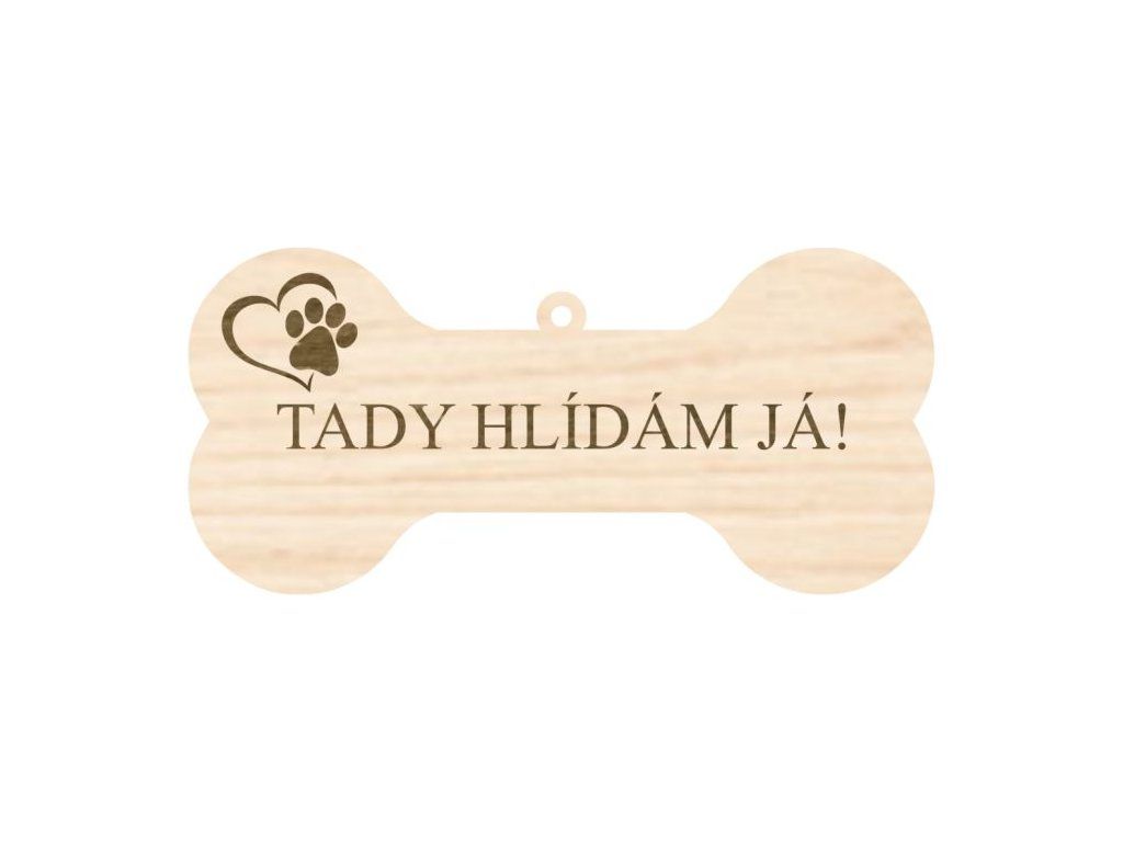 Kreativní dřevěná dekorace ve tvaru siluety kosti pro pejska. Na kosti je napsáno: