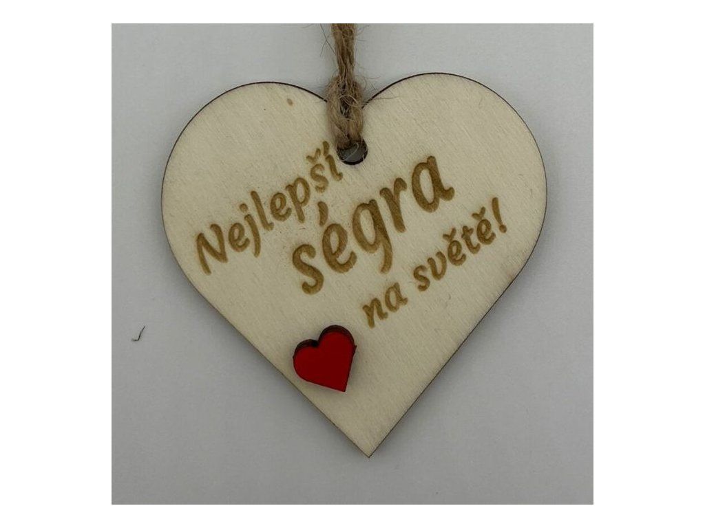 Toto dřevěné srdíčko s nápisem "Nejlepší ségra" je ideální volbou, jak jí vyjádřit svou lásku a vděk za její podporu.