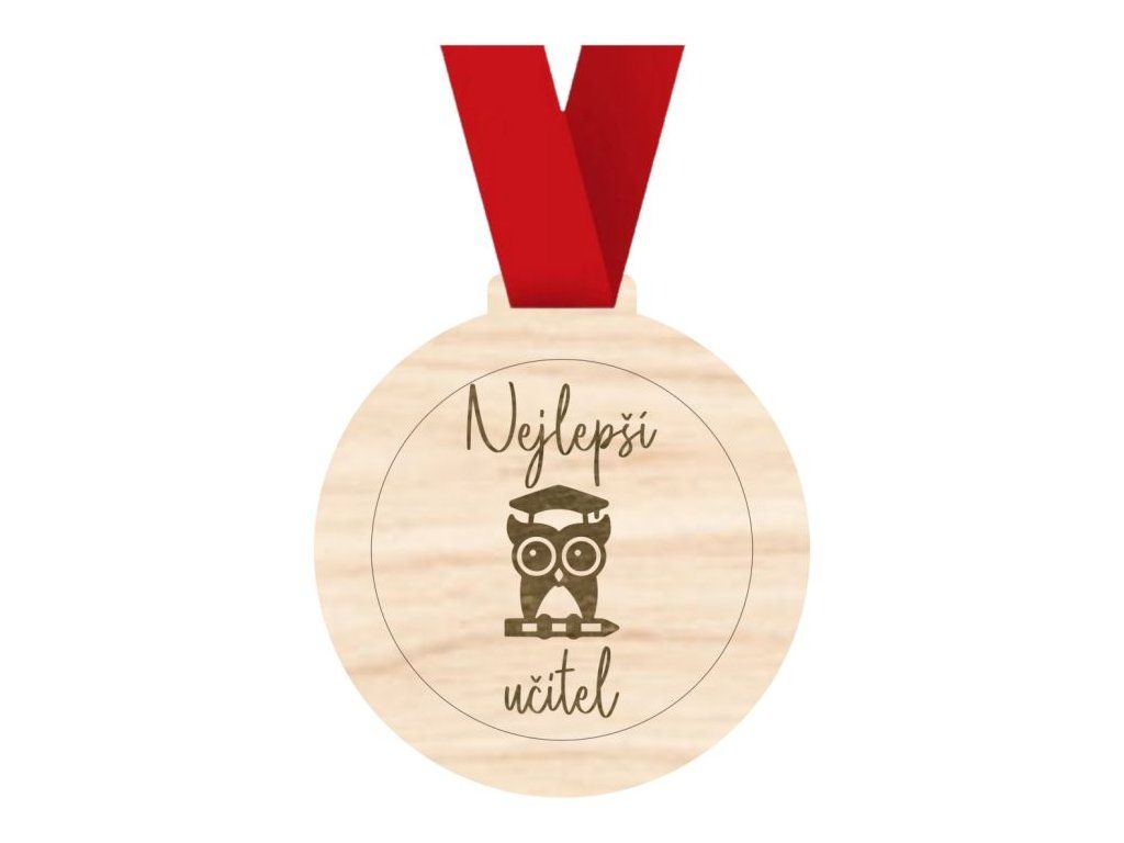 Skvělá medaile pro nejlepšího učitele! Na medaili je vyobrazená malá sovička sedící na tužce, což symbolizuje moudrost, vzdělání a učitelský talent. Perfektní způsob, jak vyjádřit vděk a uznání za skvělou práci pedagoga. 🎉
