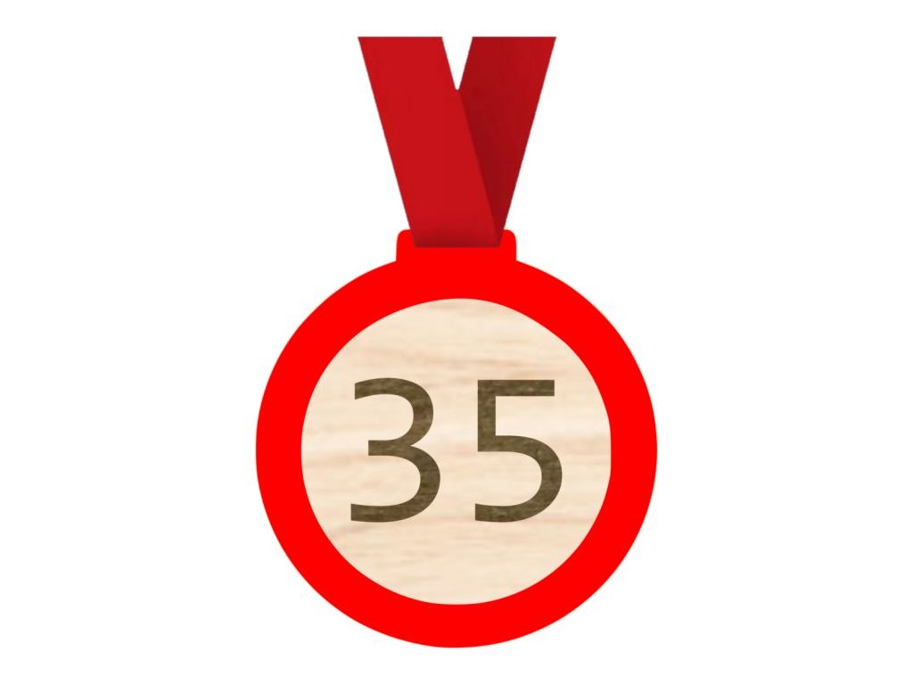 Unikátní narozeninová medaile ve tvaru dopravní značky s červeným prstencem, která zobrazuje věk 35 let. Oslavte tuto důležitou etapu života s medailí, která zdůrazňuje, že jste v plné síle a připraveni na nové výzvy. 🎉