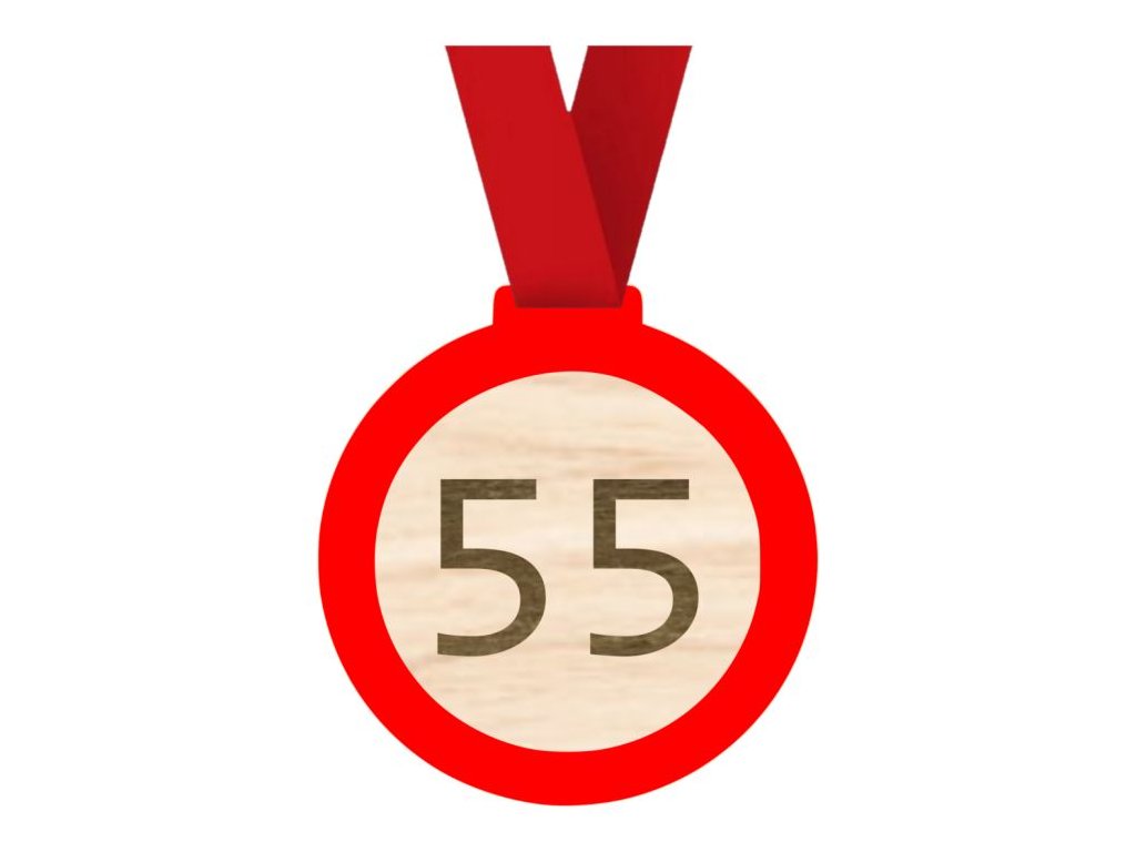 Originální medaile k oslavě 55. narozenin! Design inspirovaný dopravní značkou s výrazným červeným prstencem z druhé vrstvy, který vytváří krásný 3D efekt. Ideální dárek pro všechny, kteří slaví své životní jízdy a nebojí se ukázat číslo! 🎉