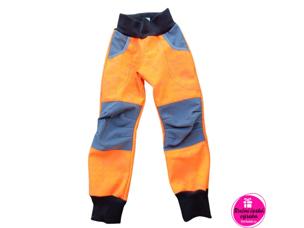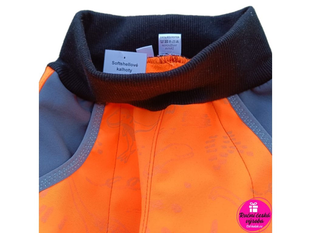Softshellové kalhoty - Oranžové - reflexní dinosauři