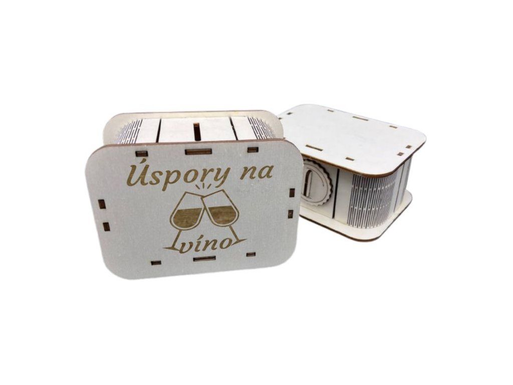 Stylová dřevěná pokladnička určená přímo pro milovníky vína! S nápisem „Úspory na víno“ skvěle zapadne do každé domácnosti nebo vinotéky. Praktický a zároveň vtipný doplněk, který pobaví a zároveň pomůže šetřit na další skleničku či láhev.