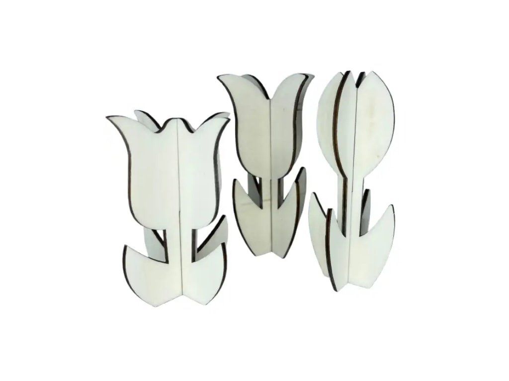🌷 Sada 3D dřevěných tulipánů pro jarní výzdobu Rozměry: Výška největší květiny 12 cm – výrazný prvek pro vaši dekoraci. 3D prostorový efekt: Každá květina se skládá ze dvou dílů, které do sebe jednoduše zapadnou a vytvoří prostorový objekt. Topolová překližka: Přírodní světlé dřevo s kontrastními opálenými hranami, které zvýrazňují siluetu květin. Variabilní sada: Set obsahuje 3 kusy květin v různých tvarech, což umožňuje vytvořit pestrou jarní skupinku na stole či poličce.