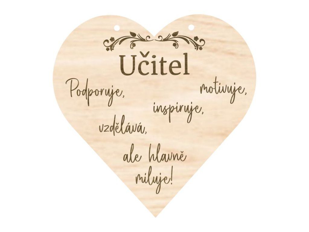 Krásné dřevěné srdce věnované panu učiteli, které vystihuje vše podstatné. Na srdci jsou napsaná slova: