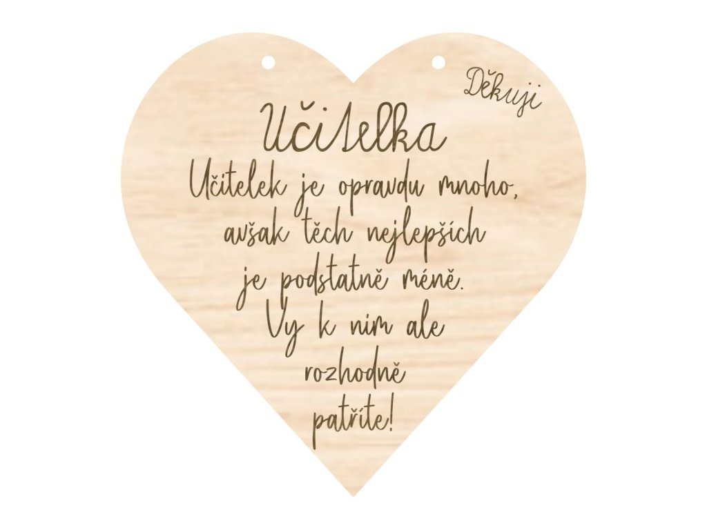 Toto dřevěné srdce s textem "Učitelek je opravdu mnoho, avšak těch nejlepších je podstatně méně. Vy k nim ale rozhodně patříte!" je krásným a vděčným způsobem, jak ocenit práci skvělé učitelky, která dává svým žákům nejen vědomosti, ale i lásku a péči.