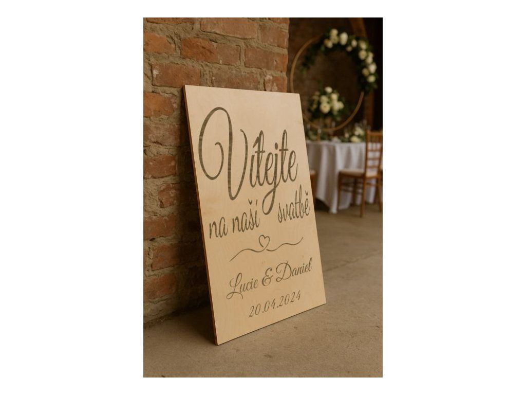 Cedule je vyrobena z kvalitní topolové překližky, která zajišťuje dlouhou životnost a krásný vzhled na vaší svatbě.