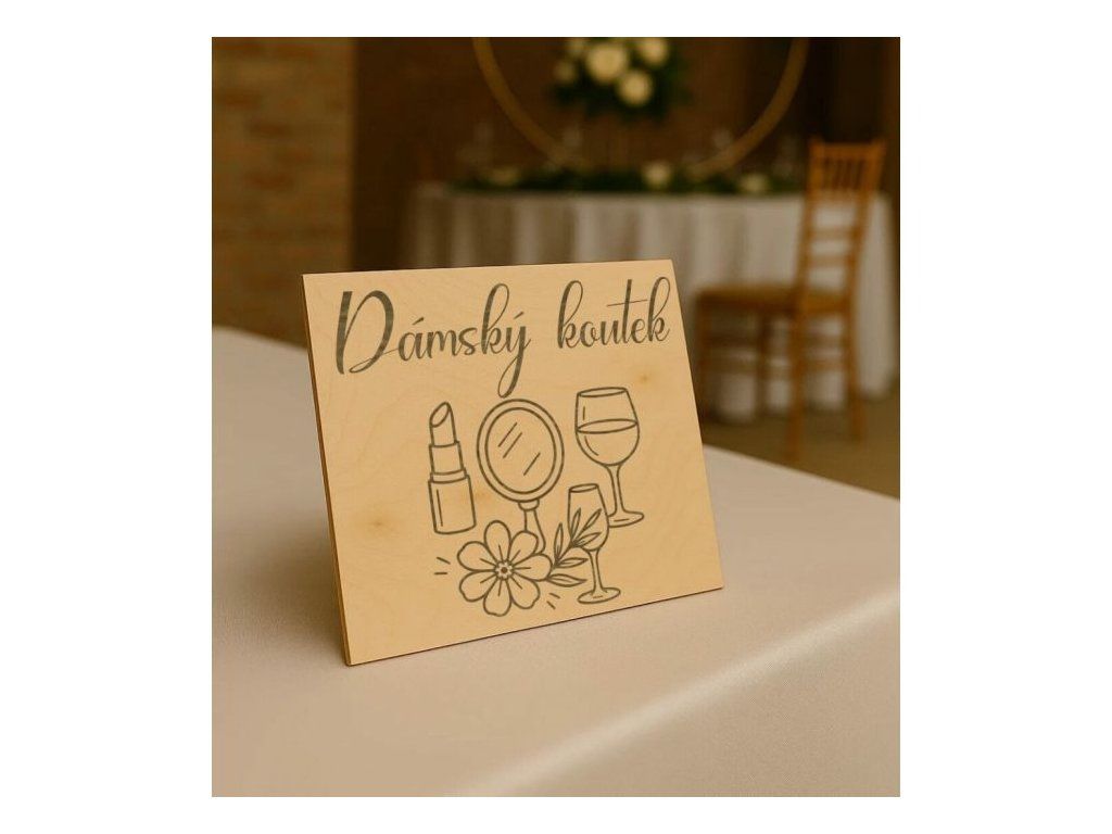Vytvořte stylové místo pro dámy s elegantní dřevěnou cedulkou „Dámský koutek“.