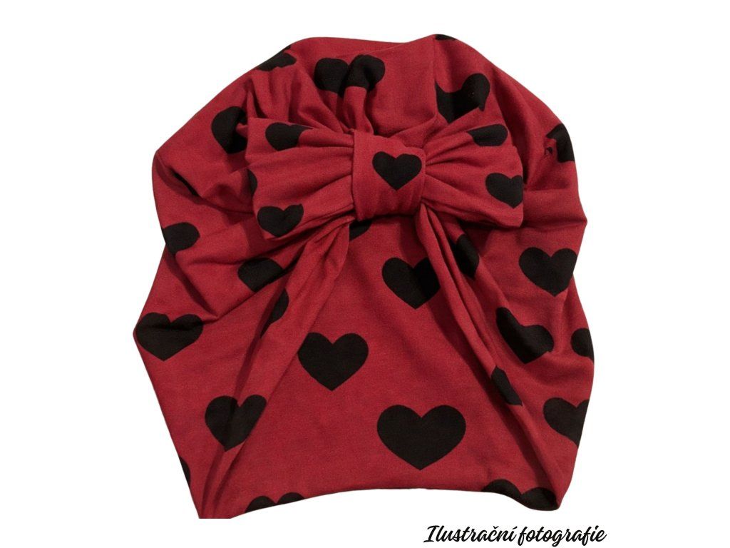 Turbánek s mašlí - ČERNÁ SRDCE NA BORDÓ