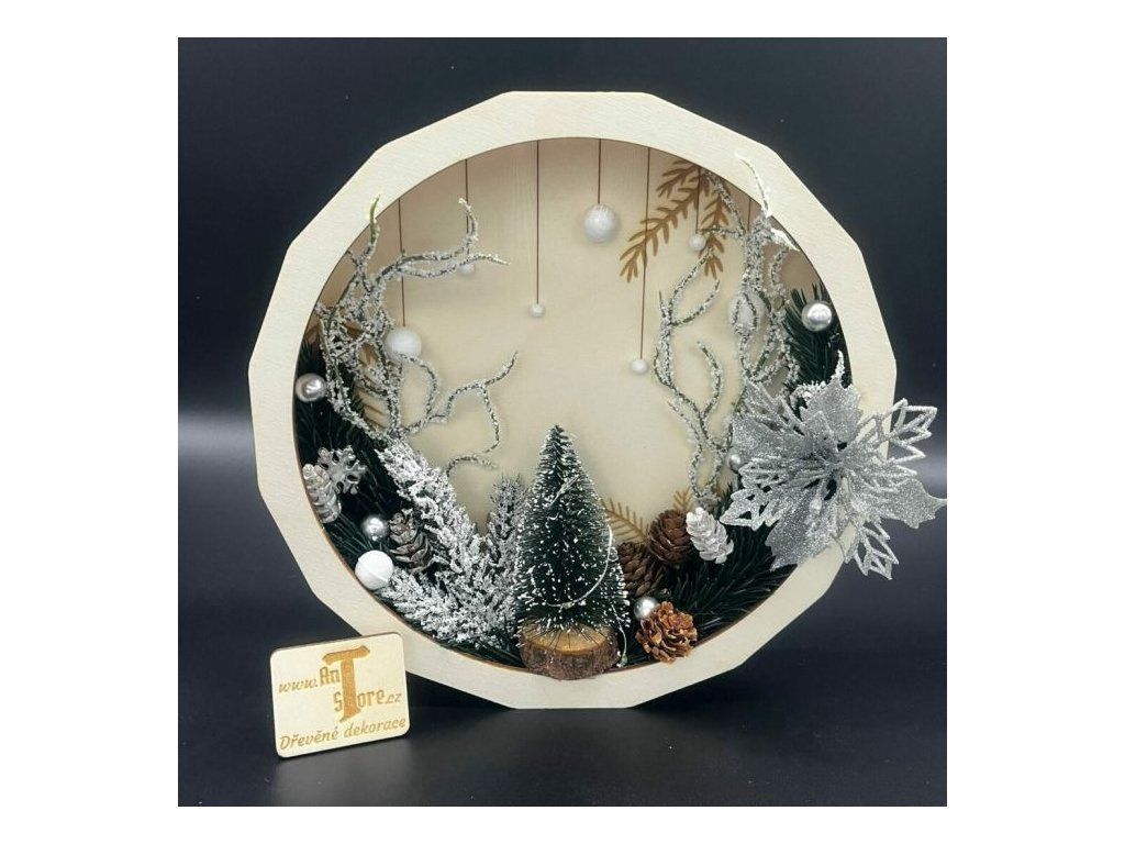 Vytvořte kouzelnou atmosféru Vánoc s tímto dřevěným kruhovým stromem, který přináší teplo a radost do každého domova. Světýlka a pečlivě vybrané ozdoby, jako jsou chvojí a baňky, dodávají této dekoraci tradiční i moderní nádech. Ideální pro ty, kdo hledají netradiční vánoční výzdobu s přírodním a elegantním vzhledem. Přidejte tento jedinečný strom do svého interiéru a nechte ho zazářit během sváteční sezóny. Vánoční kruh je vybaven dírkou na horní straně pro provlečení provázku. Světýlka neobsahují baterky!