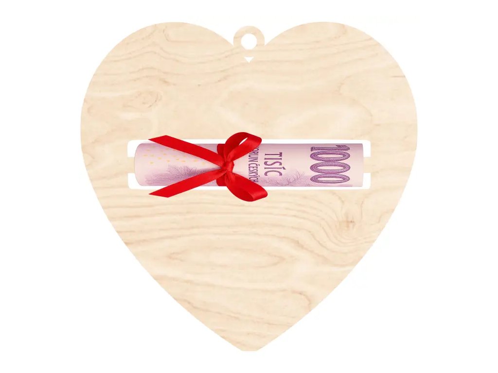Náše dřevěné Srdce je ten nejkrásnější způsob, jak dát najevo své city a zároveň obdarovat hotovostí. Je to elegantní a milá alternativa k obálce. Bankovku srolujte, protáhněte ji připraveným výřezem a pověste na stromek. Ukážete tak, že se jedná o dárek, který jste vybrali s láskou.