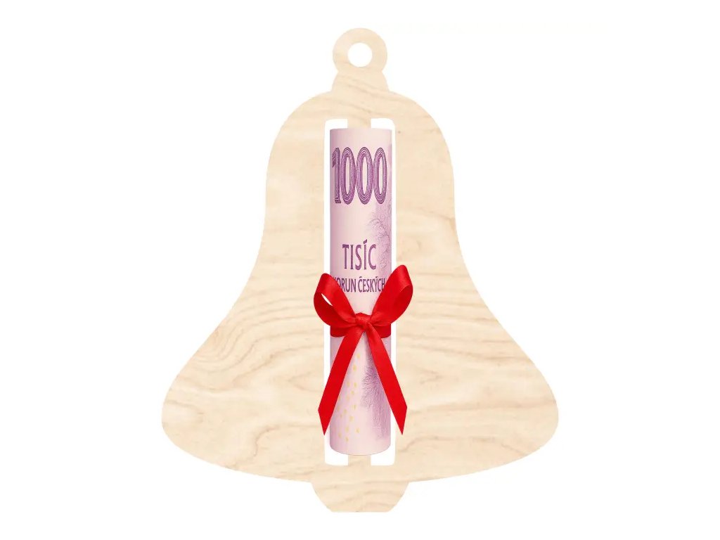 Náš dřevěný zvoneček je nádherný symbol Vánoc a navíc slouží jako originální balení peněžního daru. Je to elegantní a nápaditá alternativa k obyčejné obálce. Srolujte bankovku, protáhněte výřezem uprostřed zvonečku a pověste ji na viditelné místo. Tímto gestem dáte dárku punc překvapení a vtipu!