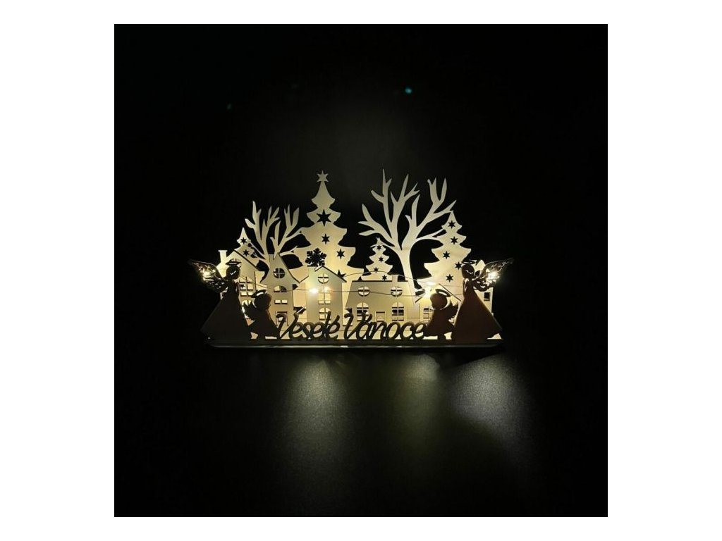 Tato LED vesnička přináší kouzlo zimní atmosféry do vašeho domova. Sestavená ze tří vrstev dřevěných siluet, které dohromady tvoří malebný obraz zimní vesnice, je ideálním doplňkem pro vánoční období. Jemné LED osvětlení zvýrazňuje detaily a přidává vesničce příjemný a útulný nádech. Umístěte ji na poličku, parapet, nebo stůl a vychutnejte si klidnou zimní krajinu přímo u vás doma.