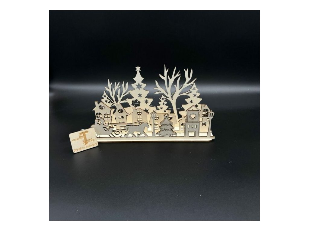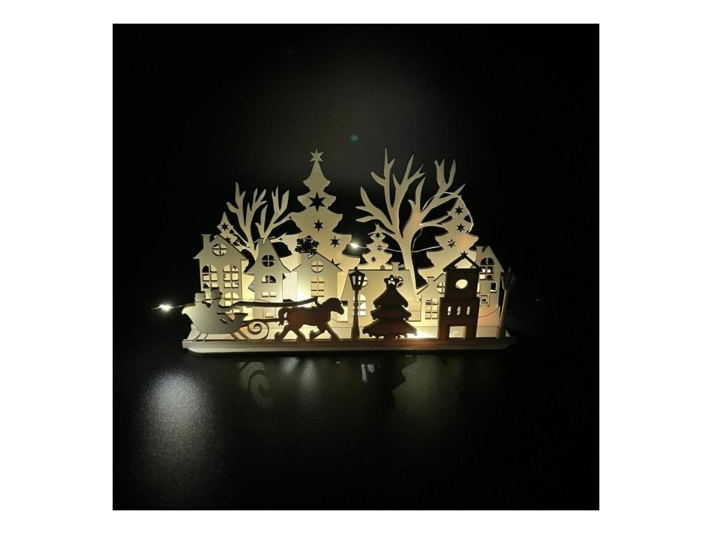 Tato LED vesnička přináší kouzlo zimní atmosféry do vašeho domova. Sestavená ze tří vrstev dřevěných siluet, které dohromady tvoří malebný obraz zimní vesnice, je ideálním doplňkem pro vánoční období. Jemné LED osvětlení zvýrazňuje detaily a přidává vesničce příjemný a útulný nádech. Umístěte ji na poličku, parapet, nebo stůl a vychutnejte si klidnou zimní krajinu přímo u vás doma.