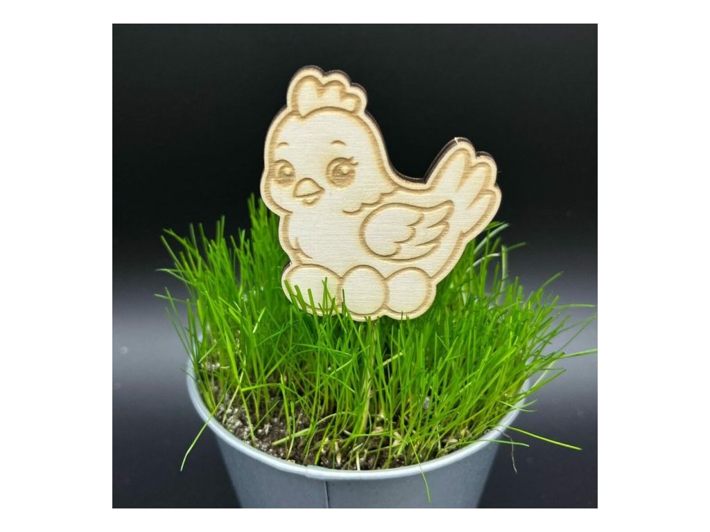 Tento dřevěný zápich ve tvaru slepičky se spoustou vajíček je skvělým způsobem, jak přidat jarní a velikonoční nádech do tvých truhlíků nebo květináčů. S jemnými detaily a veselým motivem se stane skvělým doplňkem tvé výzdoby.